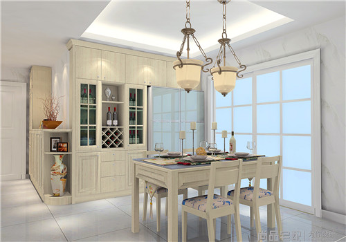 设计亮点:餐边柜设计为墙柜造型,中间的通透设计可做展示,为餐厅营造出颇具艺术感的氛围。